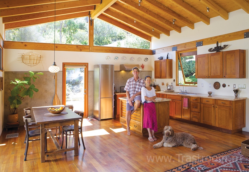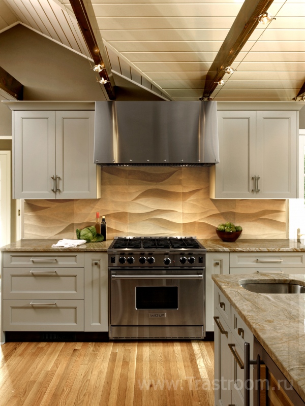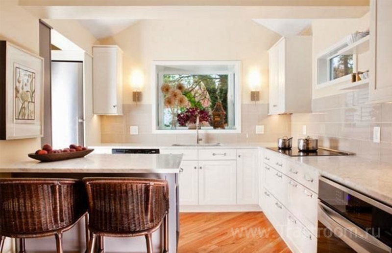 Поэтому отечественный современный дизайн кухни в этом стиле во многом подстраивается под «наши» требования, оставляя принципы изначальной организации пространства.
