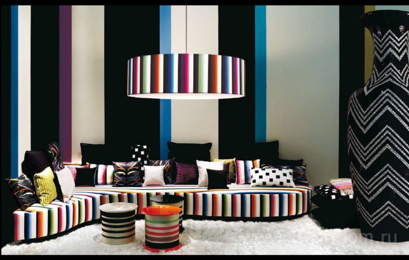 Разноцветные ткани, ковры или рисунки в восточном стиле подбираются с учетом доминирующей цветовой гаммы помещения. Главное – объединение в итоге разнообразия цветов, форм и содержания в одно слаженное, созвучное целое.