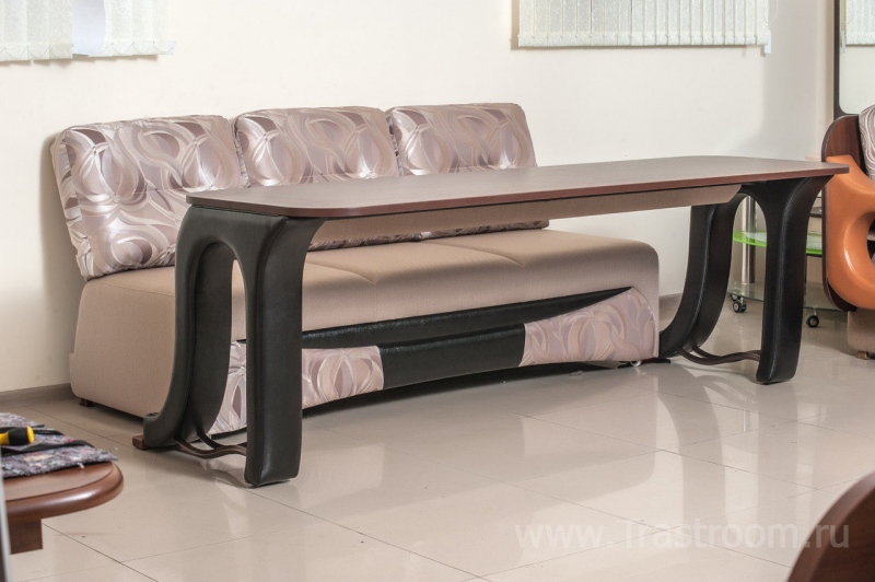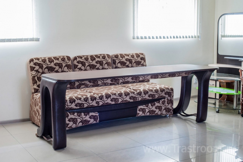 Небольшие ящики, которыми снабжается данная мебель позволяют хранить там разную мелочь. Важно, что при складывании стола, все, что находилось на нем не упадет, а просто окажется под диваном. Несколько движений, и диван превращается в полноценное двухспальное место.