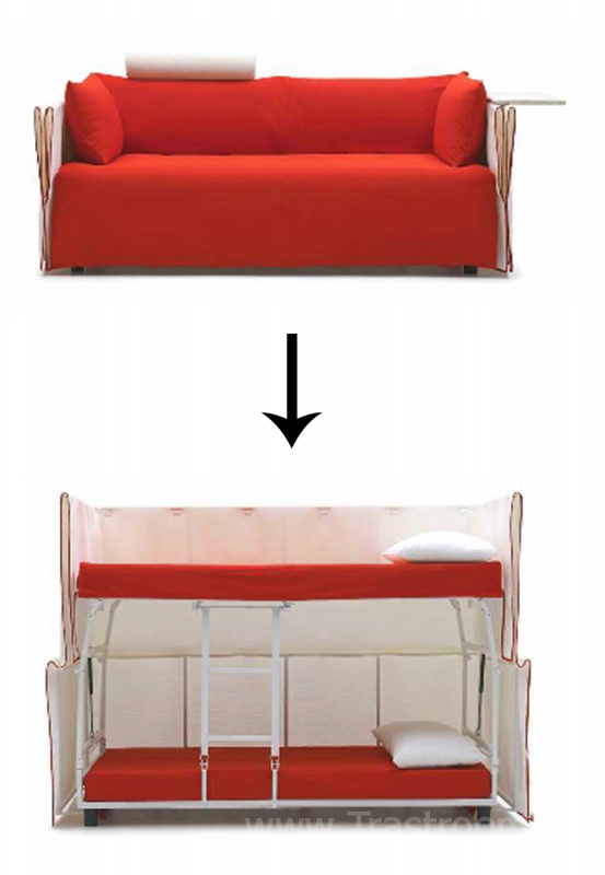 Диваны, раскладывающиеся при помощи различных механизмов в двуспальные кровати, пожалуй, самые популярные варианты мебели-трансформера. Аналогичными моделями являются кресла-трансформеры, позволяющие получить спальное место для одного человека. Такой вариант наилучшим образом подходит в качестве дополнительных спальных мест, в основном, из-за быстрого изнашивания механизма и постепенного образования щелей между секциями, мешающих нормальному отдыху.