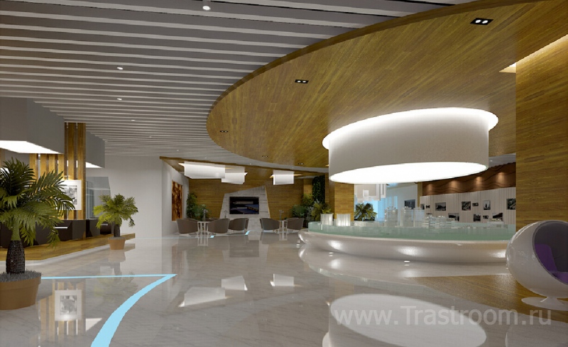 Футуристический интерьер холла гостиничного комплекса в Дубае