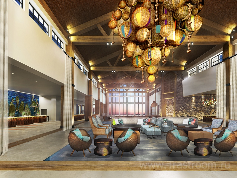 Акцент на огромные светильники - один из новейших трендов для гостиничных холлов