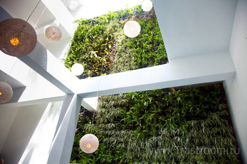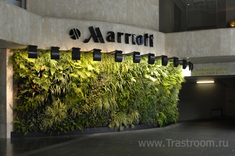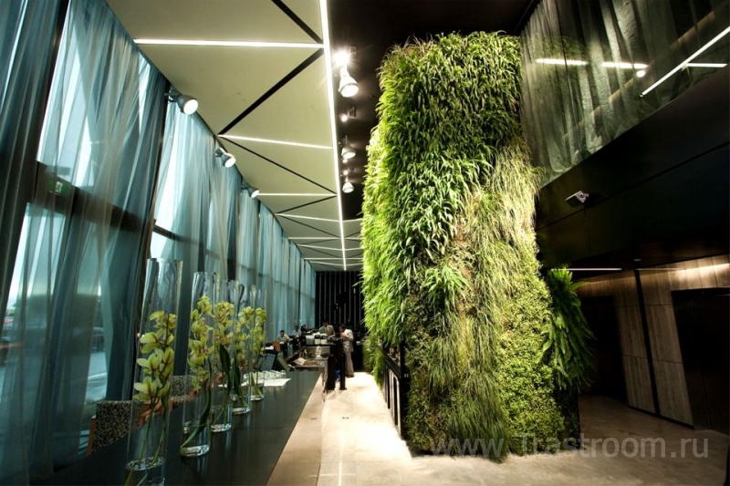 Зеленая стена - один из самых модных трендов в интерьере гостиничного холла