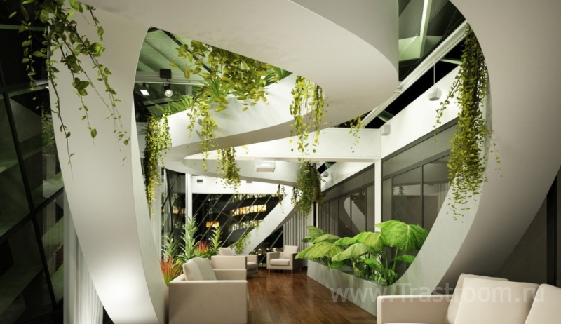 Самыми экстравагантными решениями в интерьере холлов современных гостиниц являются: