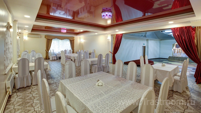 Главный зал ресторана лучше сделать официальным и торжественным, в светлых оттенках, с массивными люстрами, хорошо освещающими все уголки помещения.