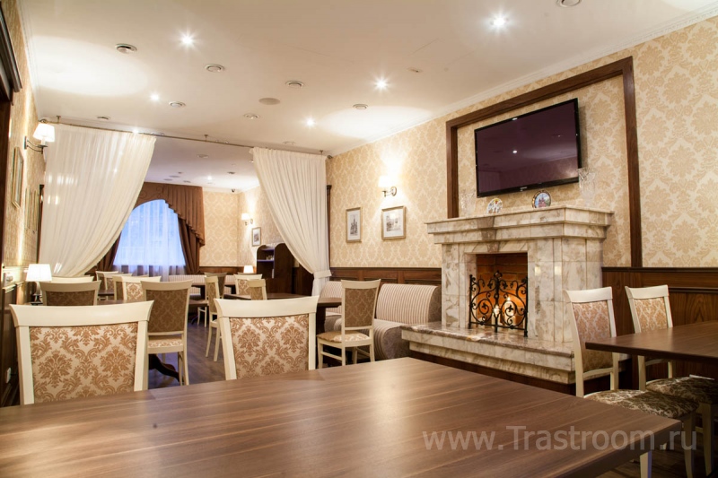 Очень часто в классических ресторанах устанавливают камин. Этот прием придает обстановке комфортабельность, тепло, уют, душевное настроение. Причем не обязательно очаг должен быть дровяным, фальш камин, внутри которого горят обычные свечи, будет также удачным решением, придающим залу немного больше романтичности.