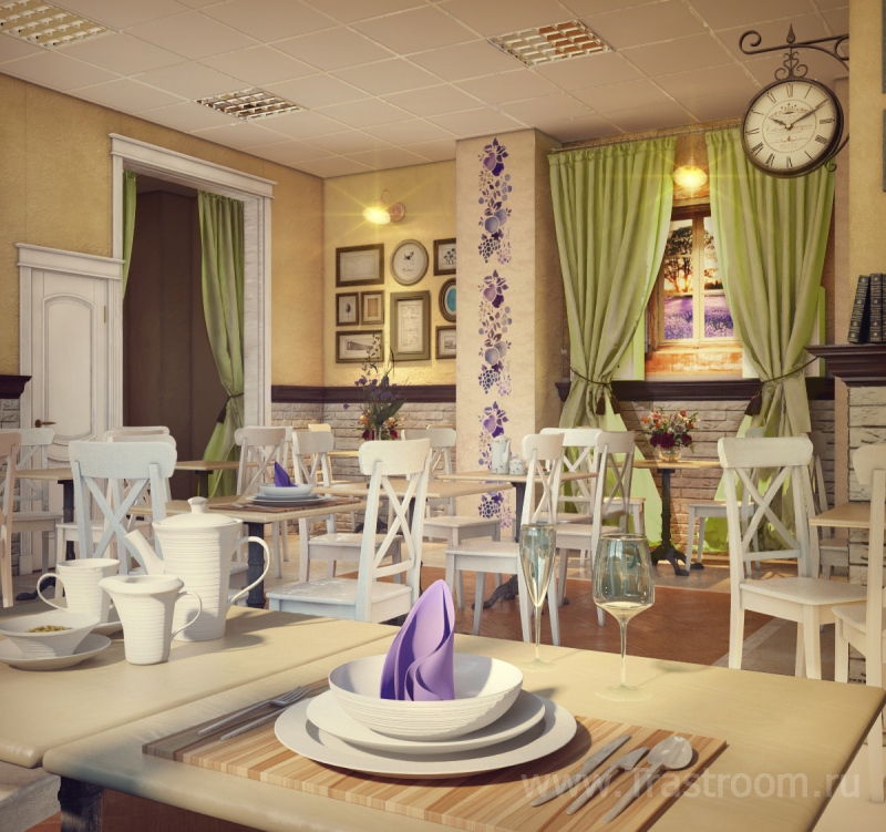 Французы знают как из простых деталей создать что-то особенное. Не раздумывайте, как создать в кафе эксклюзивный интерьер с неповторимым шармом, выбирайте прованс!