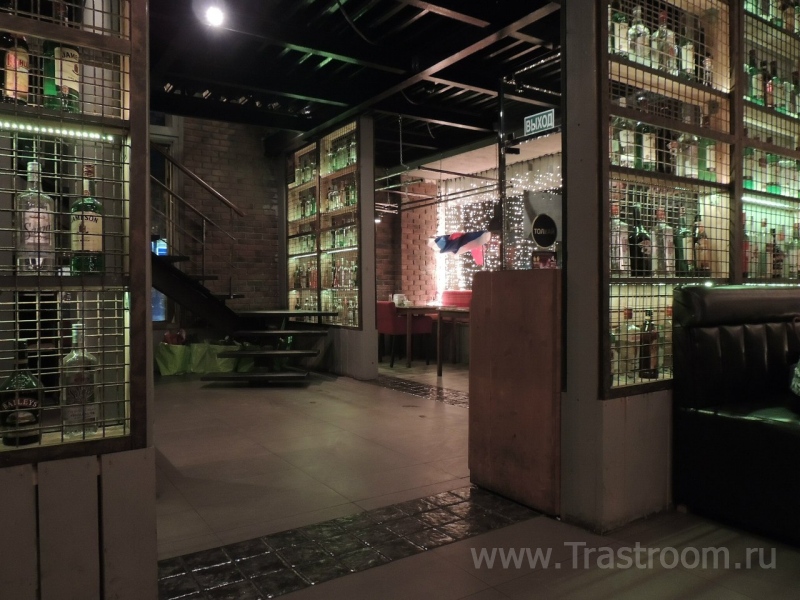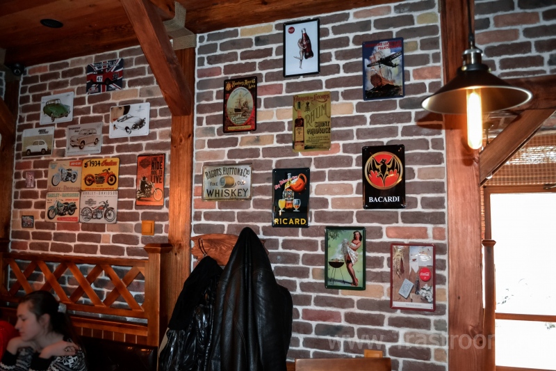 Откровенные, ничем не прикрытые стены и потолки с первого взгляда выдают стиль лофт. Незадекорированные коммуникации, незатейливые светильники, растения на столах, простые деревянные столы и табуреты, оштукатуренная барная стойка, кожаная обивка – поддерживают общее стилевое направление заведения.