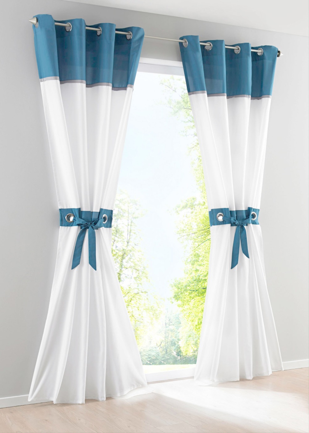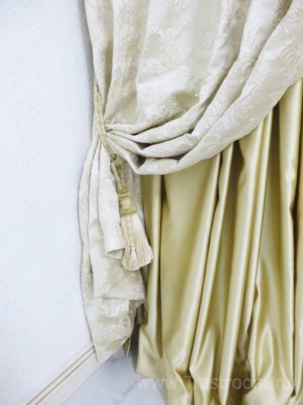 После того как определитесь с выбором штор в комнату, продумайте какая ткань будет с ними удачно сочетаться. Если первый цвет был однотонным, подберите второй с цветным орнаментом, сочетающийся с текстилем в комнате. Такой многослойный вариант можно просто подвесить друг за другом, небрежно отвернув подкладку, или подхватить верхнюю штору подвязкой.