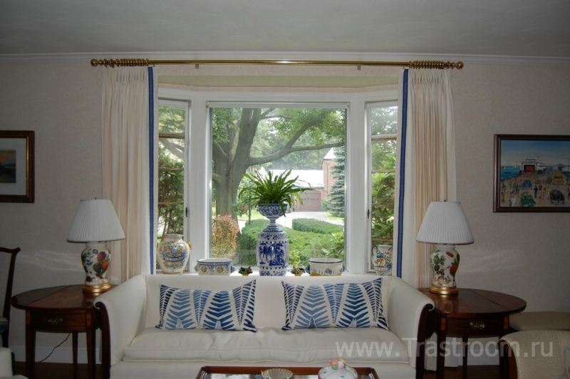 Третий прием, направленный на нарочитое подчеркивание креплений для штор, не просто очередная выдумка дизайнеров, но и отличное решение, подчеркивающее красоту высоких потолков.