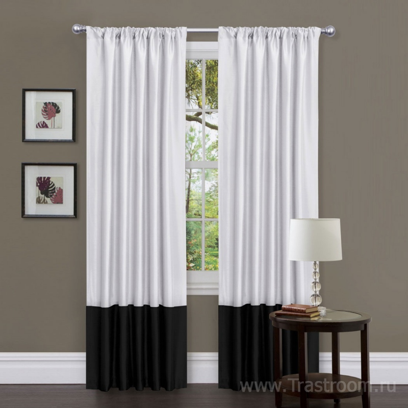 Контрастные шторы – одно из самых популярных на сегодня направлений в оформлении окон. Вешают подобранные ткани на карниз в одну линию. Кроме того, что такой вариант невероятно эстетичен и позволяет играть с разными оттенками и текстурами, это еще и удобно, ведь полностью сдвинуть такие шторы намного легче, чем массивные портьеры.
