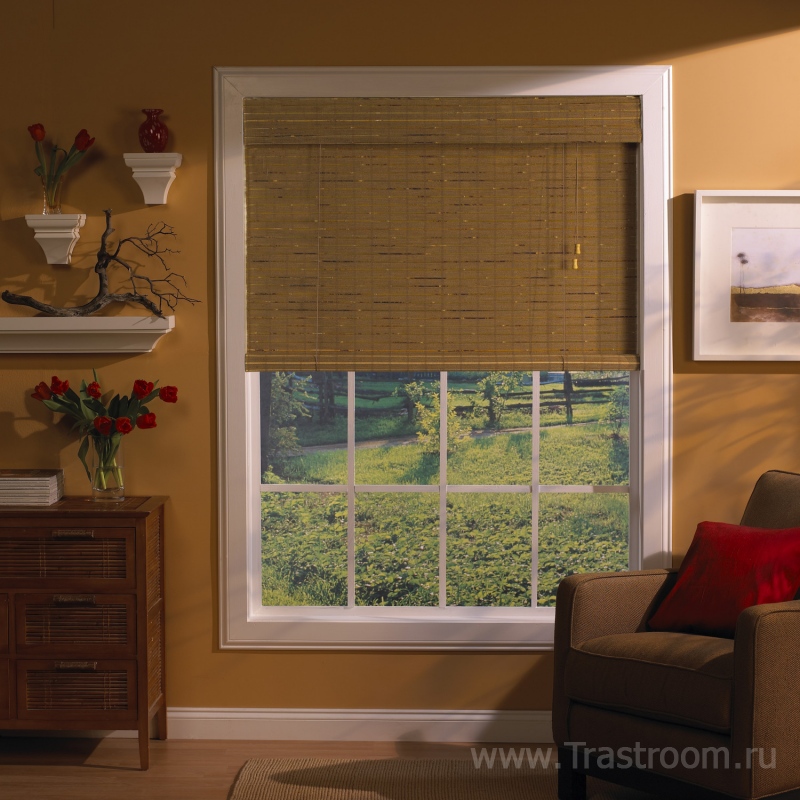 - Внешний вид. Выбор оконных штор нередко диктует общий интерьер комнаты. В некоторых случаях идеально вписываются деревянные жалюзи, а иногда лучше применить рулонные шторы с оригинальным рисунком.