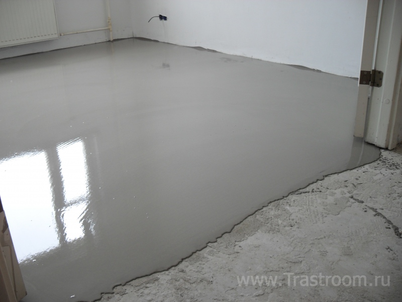2. Самовыравнивающаяся стяжка – один из наиболее удобных способов оптимизации уровня полов в квартире, особенно для непрофессионала. Специальная смесь без всякого участия растекается по горизонтальной поверхности, автоматически регулируя уровень и выравнивая полы. Заливается тонким слоем и наиболее подходит в качестве подложки под финишное покрытие.