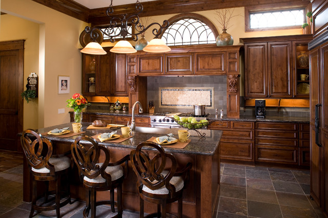 Хромированные смесители не впишутся в старинный стиль кухни. Их придется заменить на бронзовые или медные.