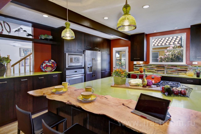 - деревянные или каменные столешницы (все о столешницах для кухни – здесь).