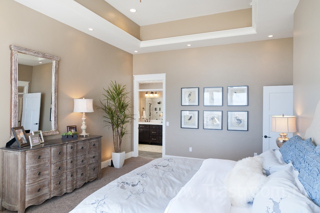 Высокий потолок в спальне любого стиля вполне позволяет оформить несколько уровней при помощи гипсокартона или натяжных полотен. Организация подсветки такого перекрытия сделает спальню настолько романтичной и уютной, что утром Вам не захочется ее покидать.