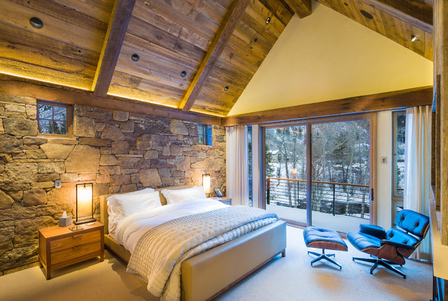 Наличие камня в отделке спальни, безусловно, сделает ее более оригинальной и своеобразной. Для того чтобы каменная укладка радовала глаз периодически ее протирают влажной губкой.