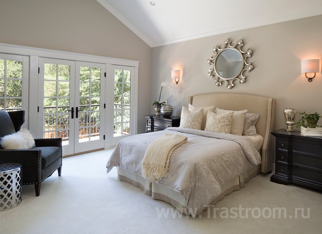 Равномерное, неяркое, загадочное освещение в спальне поможет создать торшер с абажуром второго типа. Третья разновидность плафонов способна сделать визуально потолок выше и расширить пространство маленькой спальни за счет отраженного от стен света.