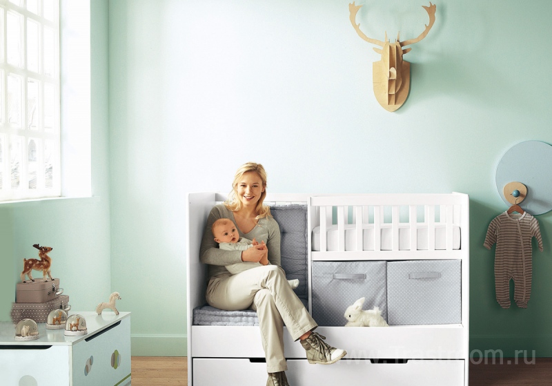 - и в-четвертых, не стоит забывать, что новорожденный скоро подрастет, и ему понадобится гораздо больше места для игр и занятий, поэтому во избежание необходимости скорого ремонта, пространство детской зоны не должно быть слишком ограниченным.
