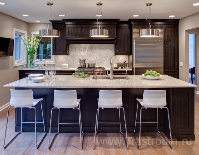 Если дизайн кухни подразумевает установку барной стойки, целесообразно выбрать к ней высокие стулья-табуреты. Для того чтобы не прогадать с их размерами, для начала следует определить количество сантиметров от столешницы до пола. Затем вычесть отсюда высоту стула.