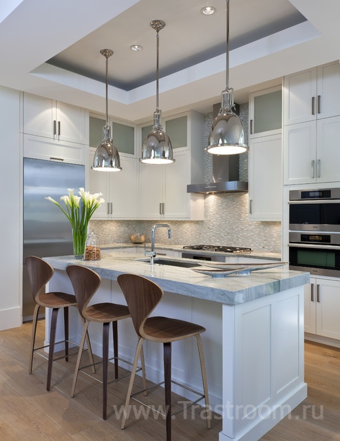 Оригинально смотрятся на современной кухне модели прозрачных пластиковых стульев.