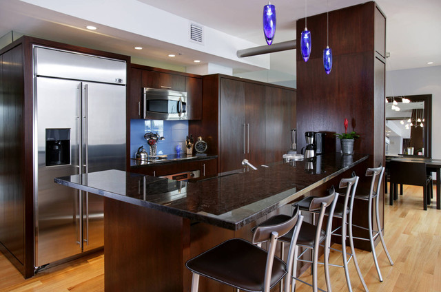 Некоторые варианты интерьера угловой кухни с установленной барной стойкой: