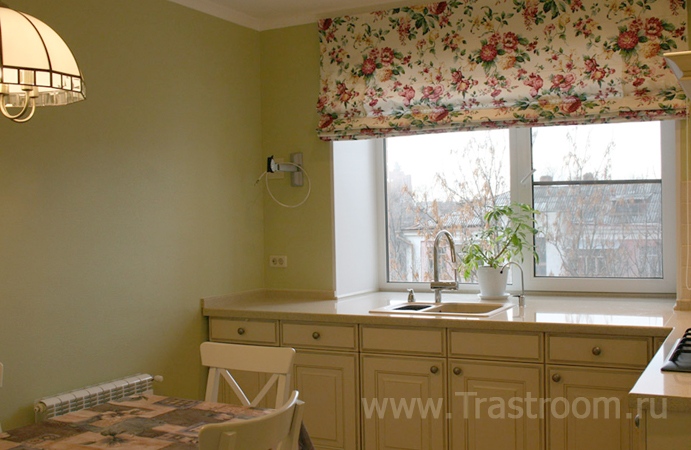 При использовании подоконника в качестве функциональной зоны кухни стандартные гардины на окна будут лишними. Если необходимо затенить яркий солнечный свет или закрыть помещение от посторонних лучше отдать предпочтение роллетам или жестким ламбрекенам, не загромождающим пространство окна.