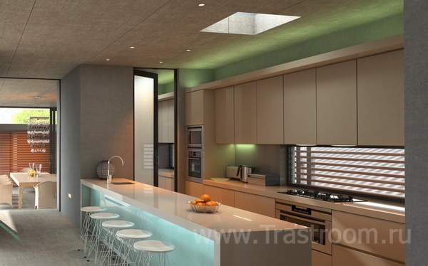 Не менее востребованы на современной кухне столешницы, выполненные из полимерного камня. Для изготовления последнего применяют вяжущую основу (полиэфирные смолы или цемент) и наполнитель натурального происхождения (известняк, песчаник, мелкодисперсные элементы натуральных камней).