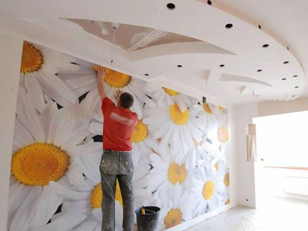 Предварительным этапом поклейки флизелиновых обоев является обработка стен: установка гипсокартонных конструкций либо отштукатуривание, а также нанесение грунтовки и шпаклевки в обоих случаях.