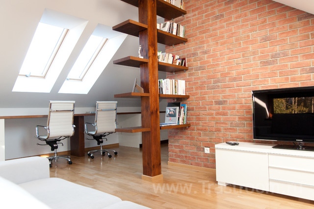 Здесь преобладает стилизованный и выразительный интерьер, а характерные для Лофта колонны, фермы и грубые доски на полу могут из-за недостатка места выполняться чисто символически.