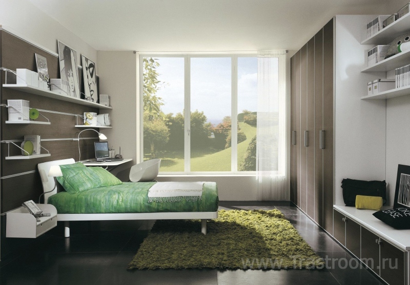 - Трансформируемая кровать позволяет использовать комнату в течение дня для других (кроме сна) целей. Это удобный вариант для квартиры-студии.