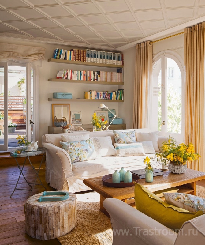 - легкого, рассеянного естественного освещения, проникающего в комнату через прозрачные занавески;