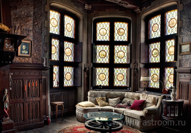 Использование витражных стекол в интерьере позаимствовано прямо из выдающихся кафедральных соборов и церквей Европы. Живые и красочные витражи, выполненные смелыми, сочными расцветками, с интересными узорами – будут удачным решением в комнату, где царит средневековая тема.